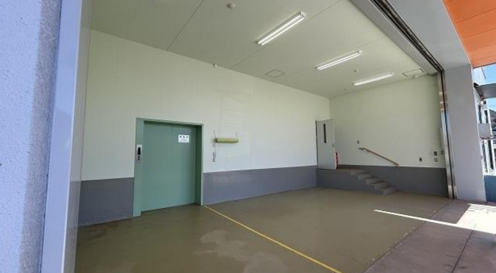 荷物用エレベーターが2基(600kg/700kg)備わっており、2階への資材搬入や製品移動がスムーズに行えます。