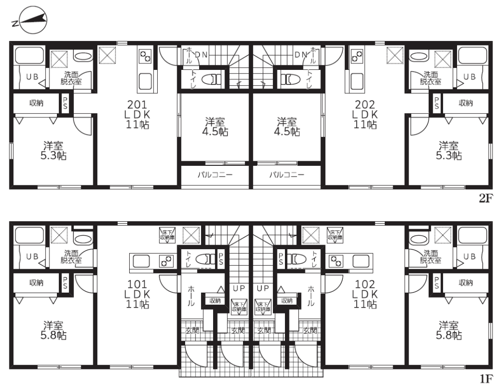 ・2026年3月完成予定、木造2階建て(重層長屋)の全4戸