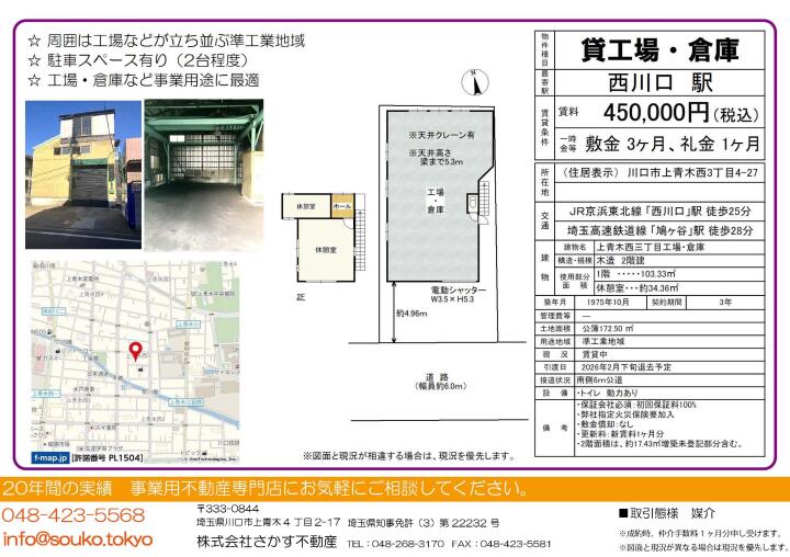 | 物件名 | 契約済み 貸工場 埼玉県さいたま市岩槻区上野3丁目6-7 | ||