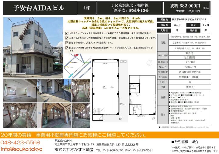 物件名 | 子安台AIDAビル 神奈川県横浜市神奈川区子安台2丁目6ー13 | ||