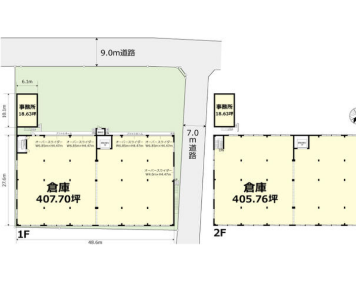 新座市野火止6丁目 2階建て倉庫・事務所 850坪