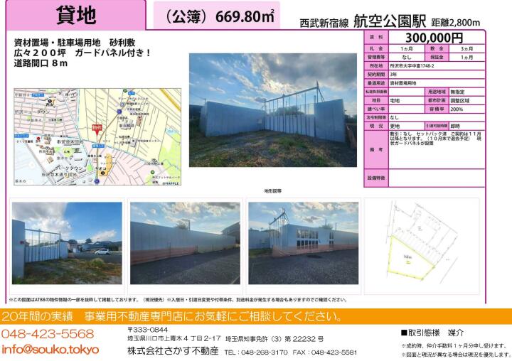 物件名 | 貸地 埼玉県所沢市大字中富1748-2 | ||