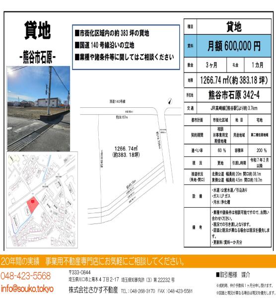 物件名 | 貸地 埼玉県熊谷市石原342-4 | ||