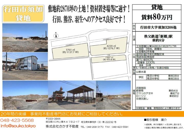 物件名 | 貸地 埼玉県行田市須加3208 | ||