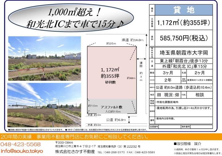 物件名 | 貸地 埼玉県朝霞市大字岡 | ||