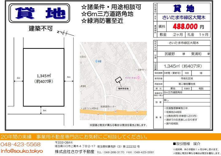 物件名 | 貸地 埼玉県さいたま市緑区大間木505−8 | ||