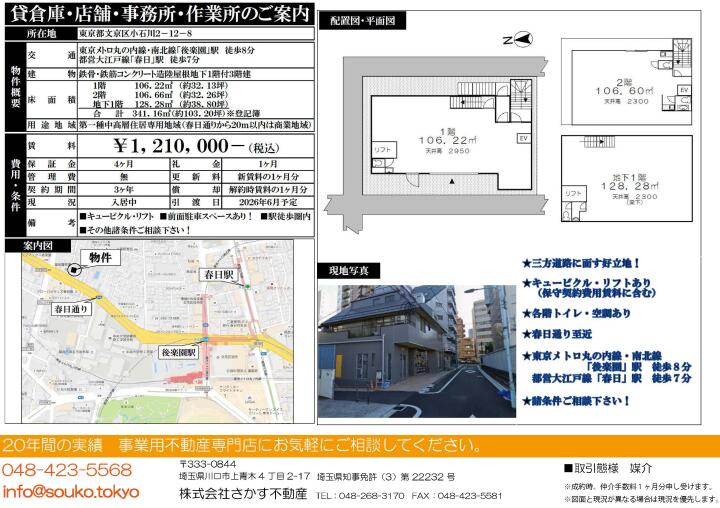 物件名 | 貸し倉庫 東京都文京区小石川2丁目12-8 | ||