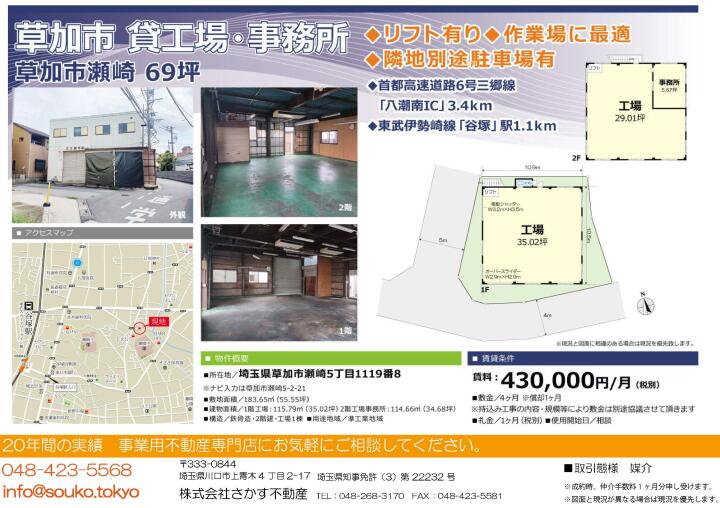 物件名 | 貸工場 埼玉県草加市瀬崎5丁目2−21 | ||