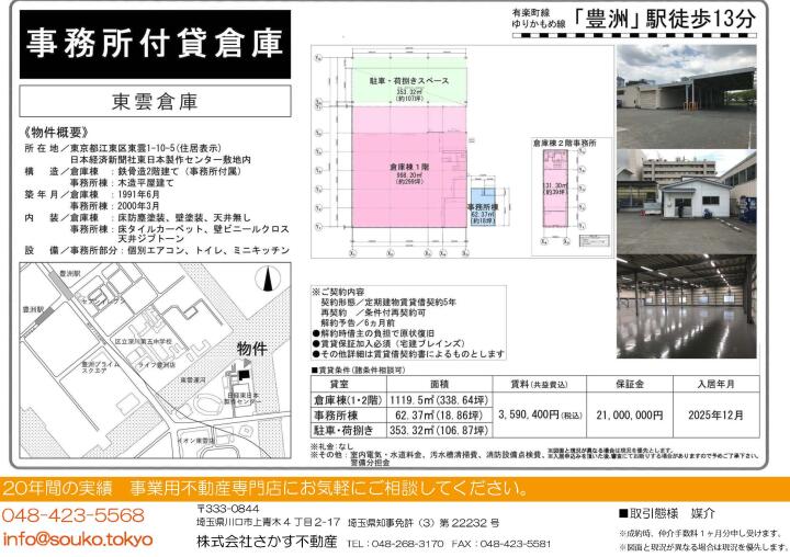 東京都江東区東雲1丁目 2階建て倉庫・事務所 357坪