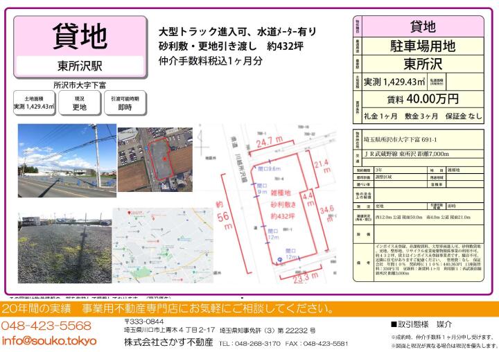 物件名 | 貸地 埼玉県所沢市下富691−1 | ||