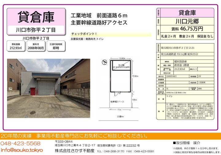 | 物件名 | 貸倉庫 埼玉県川口市弥平2丁目2−21 | ||