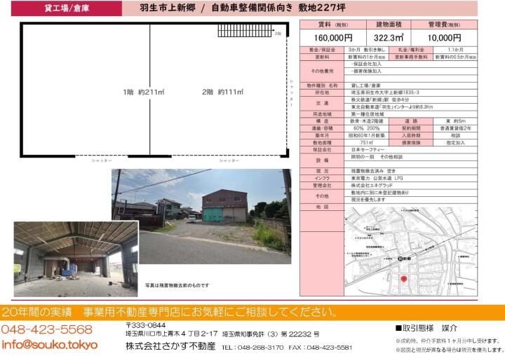 物件名 | 工場 埼玉県羽生市大字上新郷1835-3 | ||