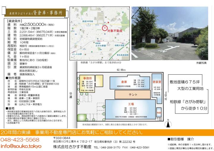 | 物件名 | 貸工場 神奈川県座間市ひばりが丘4丁目25-11 | ||