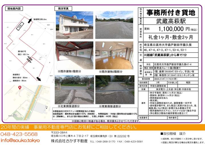 | 物件名 | 事務所付き貸地埼玉県日高市森戸新田47 | ||
