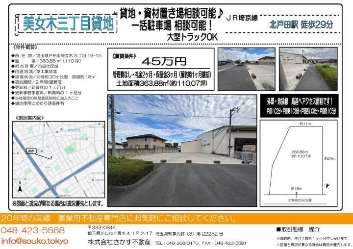 | 物件名 | 貸地 埼玉県戸田市美女木3丁目19 | ||