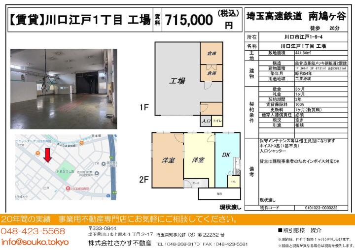 | 物件名 | 江戸工場 埼玉県川口市江戸1丁目9-4 | ||
