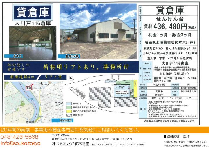 | 物件名 | 大川戸116倉庫 埼玉県北葛飾郡松伏町大字大川戸8 | ||