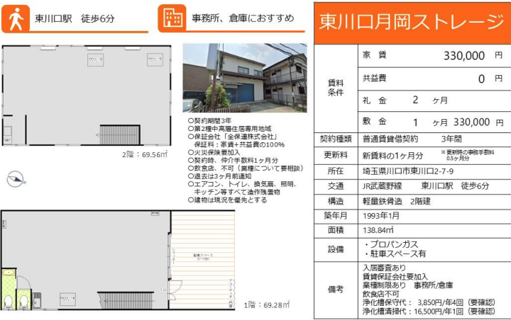 川口市東川口2丁目 2階建て倉庫 事務所 42坪