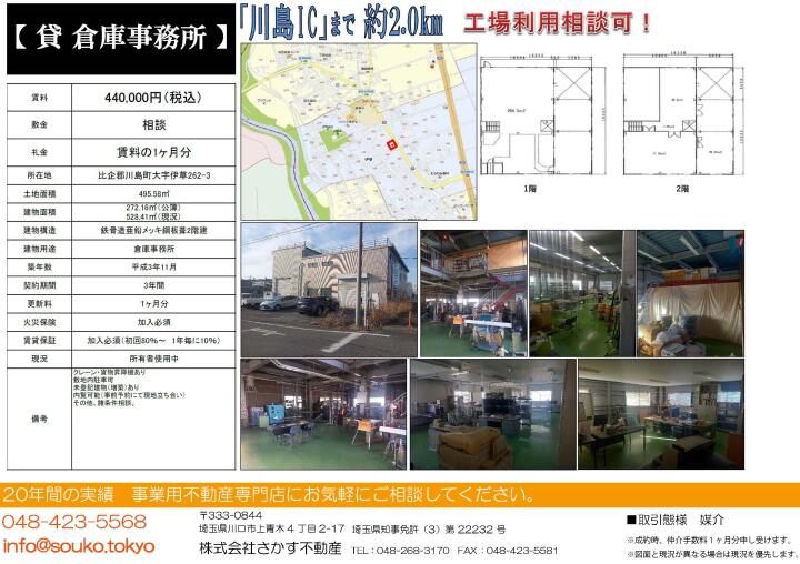 | 物件名 | 貸倉庫 埼玉県比企郡川島町大字伊草262-3 | ||