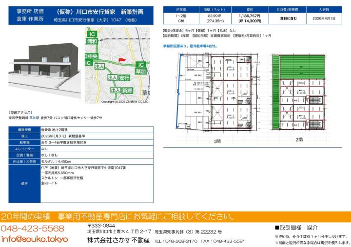 ・2026年3月完成予定、新築の貸店舗・事務所・倉庫