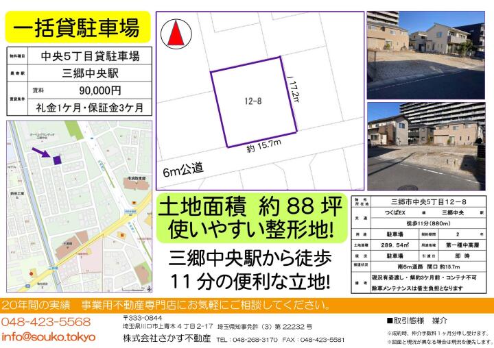 | 物件名 | 貸地 埼玉県三郷市中央5丁目12-8 | ||
