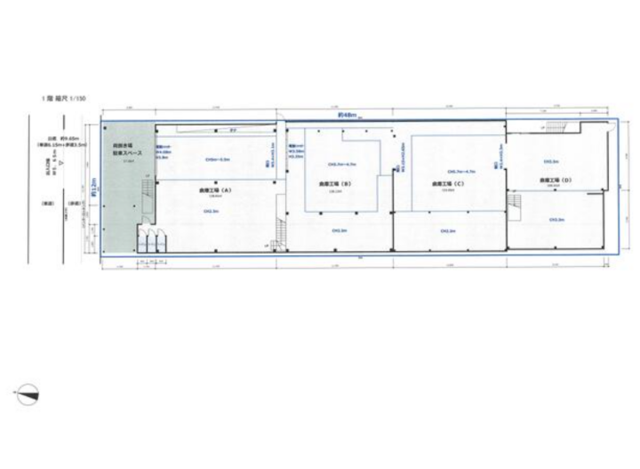 ・作業性: 奥行48m・車両乗り入れ可で、長尺物や重量物の扱いが楽です。
