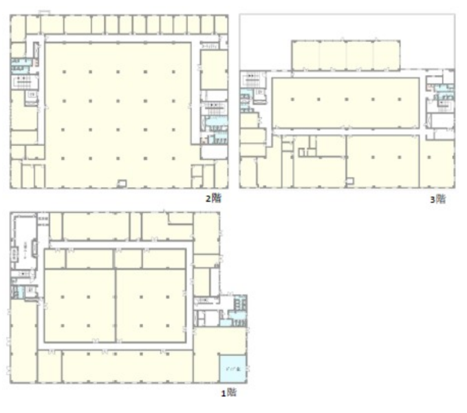 天井高: 1階3.3m〜3階2.7mと、物流倉庫としてはやや低めのため、ハイスタック(高積み)保管には向きません。