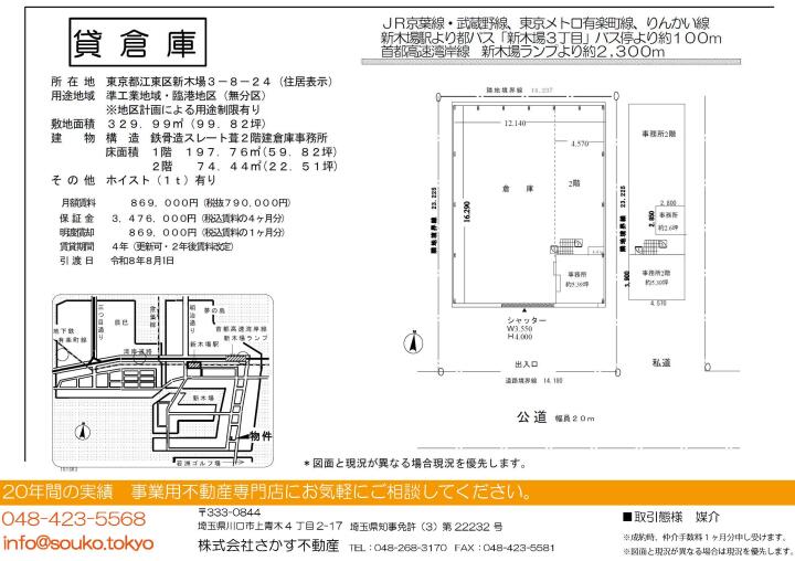 | 物件名 | 貸倉庫 東京都江東区新木場3丁目8−24 | ||