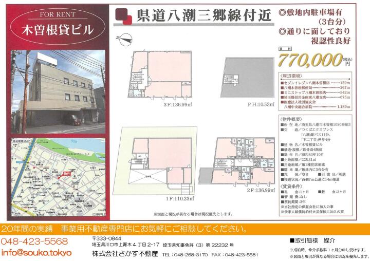 | 物件名 | 店舗事務所 埼玉県八潮市大字木曽根1080-3 | ||