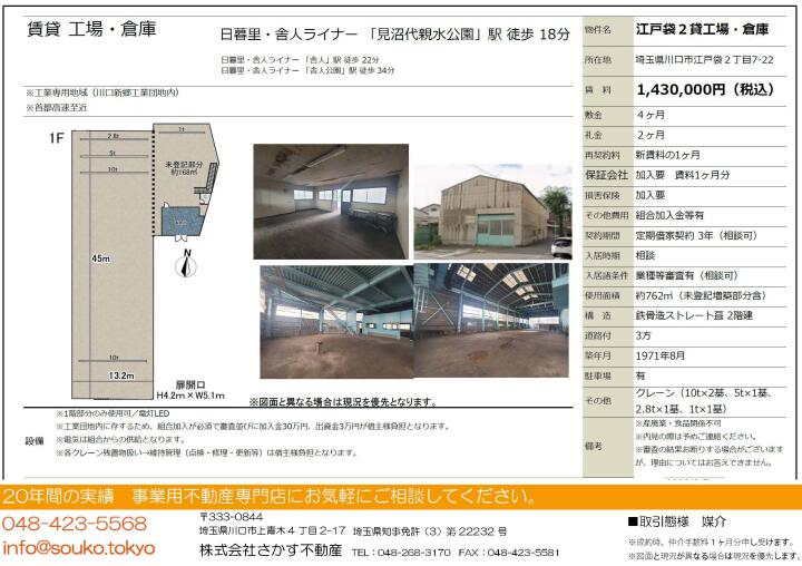 | 物件名 | 江戸袋2貸工場・倉庫 埼玉県川口市江戸袋2丁目7-22 | ||