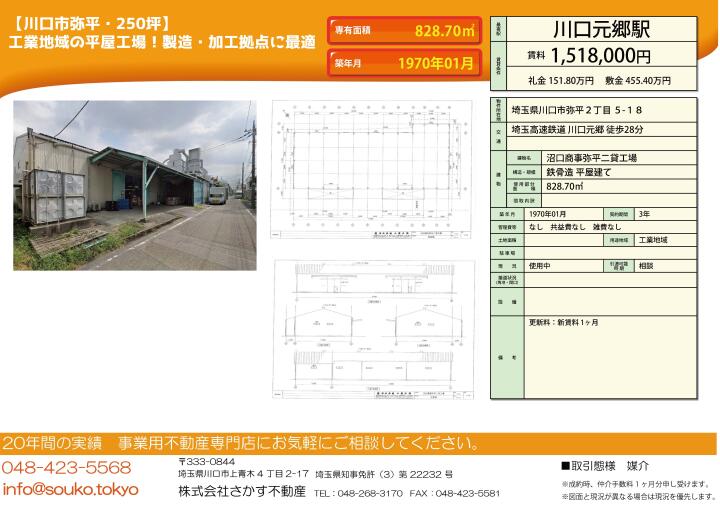 | 物件名 | 沼口商事弥平二貸工場 川口市弥平2丁目 5-18 | ||