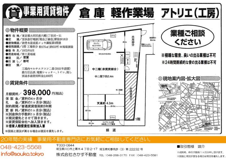 | 物件名 | 糀谷5丁目貸工場 東京都大田区東糀谷5丁目9-2 | ||
