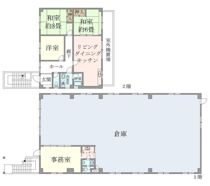 1階と2階を合わせて工場・倉庫・事務所として利用でき、用途を分けた効率的な運用が可能🛠️