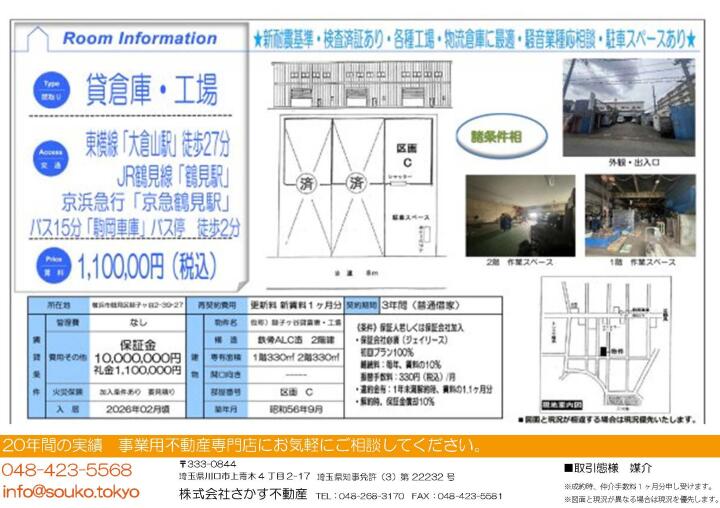 【神奈川県横浜市・貸工場/倉庫】110万円!車両アクセスに優れた独立拠点🏠