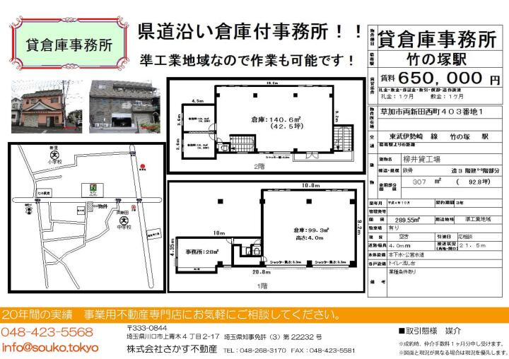 【埼玉県草加市・貸倉庫/事務所】65万円!作業所としても優秀な拠点🏠
