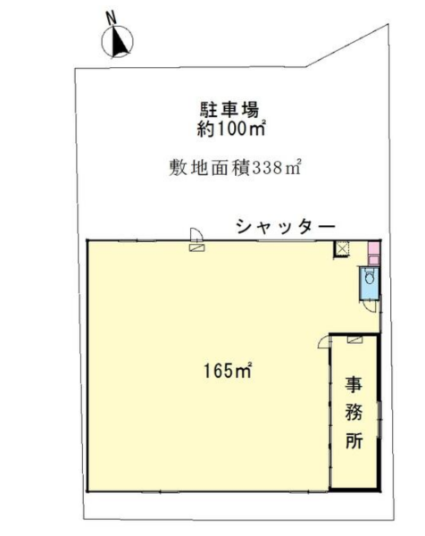 上下階の移動がないワンフロア構造は、作業効率を最大化します。築年数も比較的新しく、大切な資材を安心して保管できる環境が整っています。