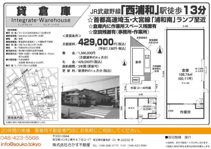 【埼玉県さいたま市・貸倉庫】429,000円(税込)!浦和南ランプ至近の機動力溢れる一棟🏠