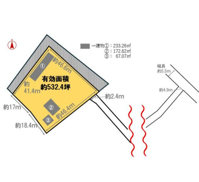 約532坪の有効面積は、多数の車両保管や大規模な資材デポとして十分なキャパシティを誇ります。自社専用の独立した拠点として柔軟な運用が可能です。