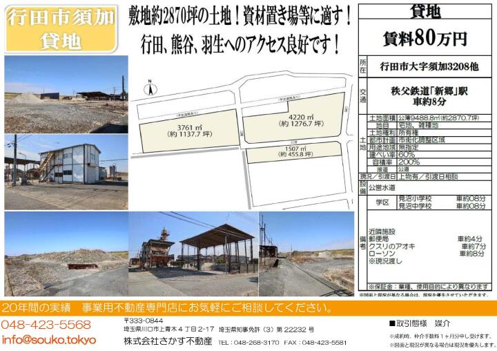 | 物件名 | 貸地 埼玉県行田市大字須加3208 | ||