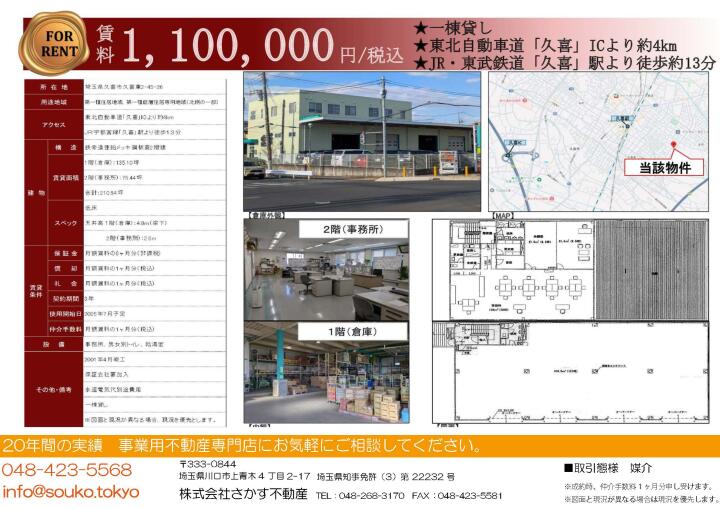 【埼玉県久喜市・貸倉庫】1,100,000円(税込)!駅近と高速アクセスの利便性を兼ね備えた一棟拠点🏠