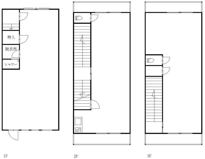 合計床面積は約157.68m²(約47.7坪)。最大の特徴は、1階に専用駐車場を備えた一体型の構造と、シャワー室やミニキッチン完備による充実した就業環境です🚗