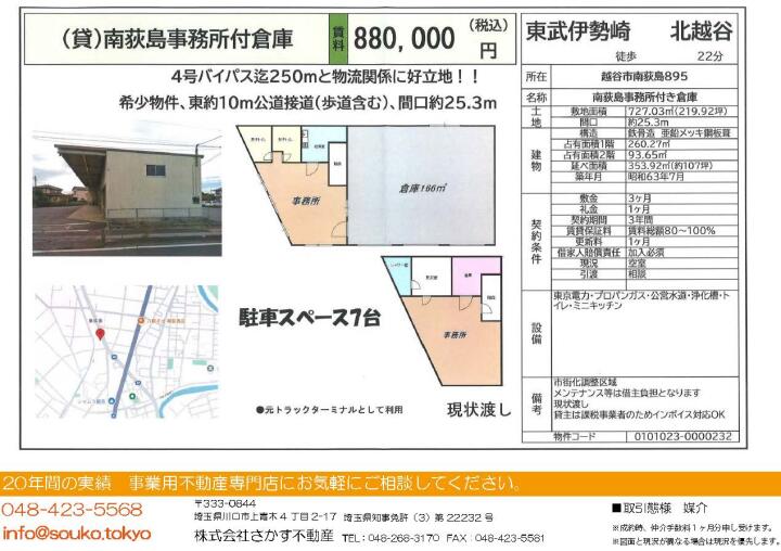 | 物件名 | 貸し倉庫 南荻島事務所付き倉庫 | ||