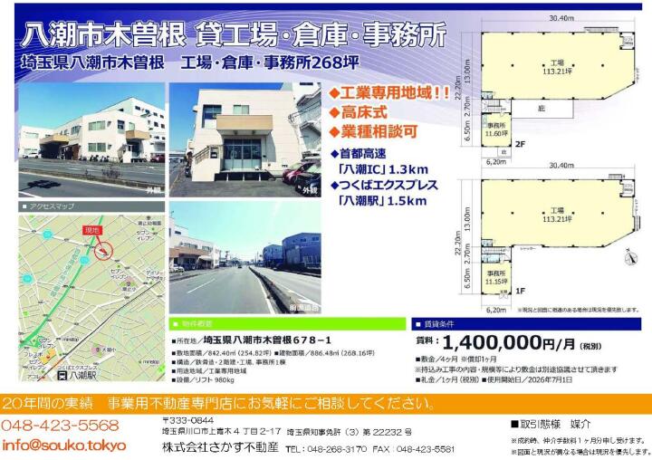 | 物件名 | 八潮市木曽根工場 埼玉県八潮市木曽根678-1 | ||