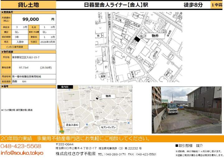 【足立区入谷・29.56坪・高速IC至近の車両/資材置き場】