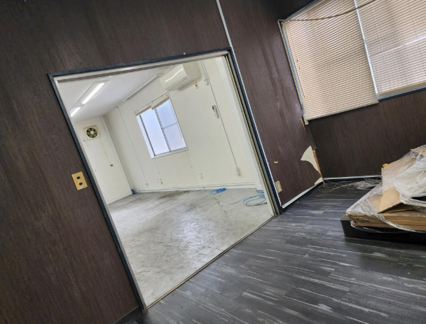 敷地内に約6台分の駐車スペースを確保。2階は事務所や作業場としての内装仕様となっており、本社機能の集約や製造拠点の併設も可能です。