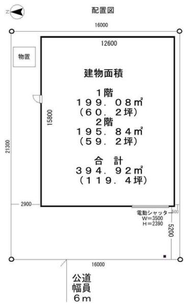 ・構造:鉄骨造2階建(1階:60.2坪、2階:59.2坪)