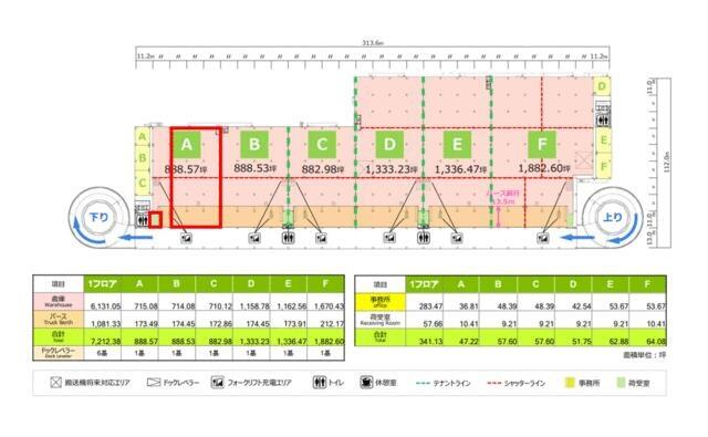 建物全体が5階建の大型施設となるため、荷役の動線やEVの待ち時間など、マルチテナント型特有の運用ルールを確認しておく必要があります。